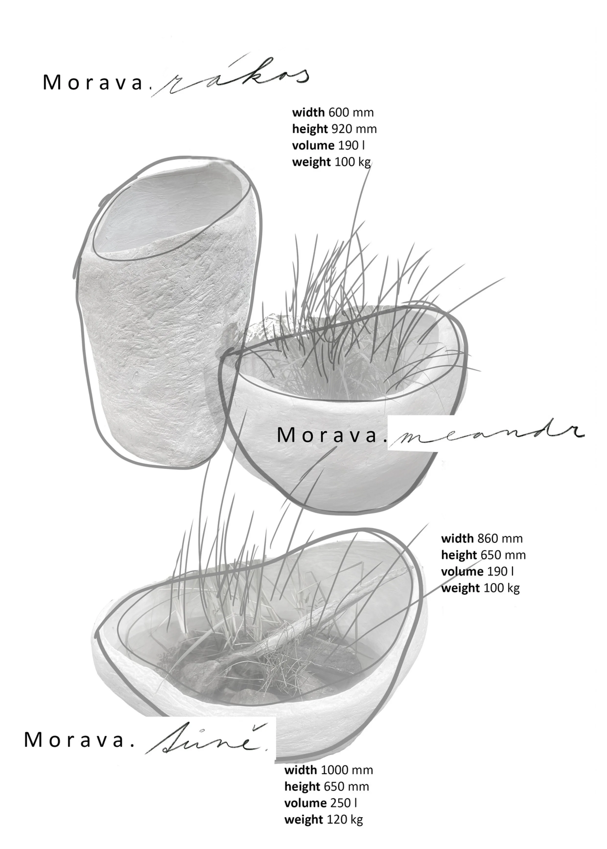 I love water and the life it carries. It pains me to see how we strip rivers of their nature - bending their flow into geometric lines, building dams, suppressing the richness of life along their surface. The Morava River suffers deeply, its current is still being wounded and has been repeatedly distrupted by human intervention. I imagine how it once flowed - wide, wild, overflowing with vegetation, when people still lived in humility and harmony with nature. This contrast between the raw energy of water and its forced control unsettles me, yet also inspires me. The geometry, rhythm, and dynamics of the current and surface ripple are reflected in the structures and forms of my vases.
