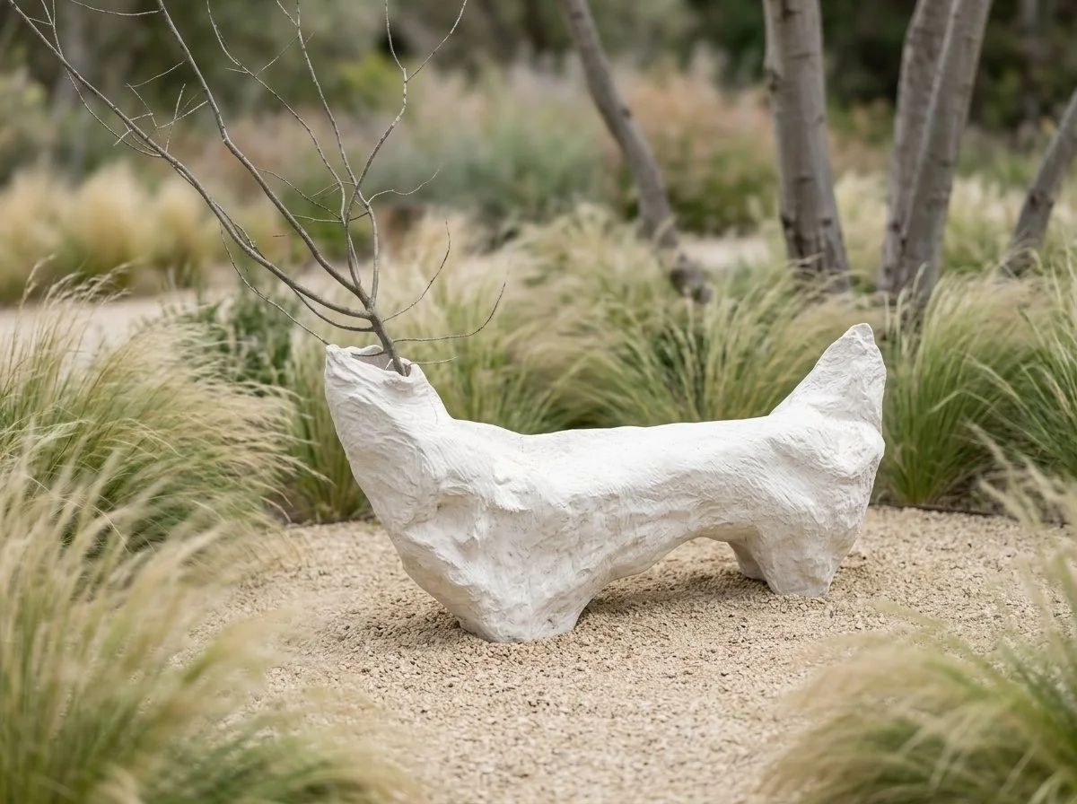 the immortal of the twin brothers Pollux and Castor, emerges here as a form that gently rises from the ground. Its shape, reminiscent of driftwood shaped by water and time, carries a sense of quiet ascent—less anchored, more open, subtly reaching beyond itself.