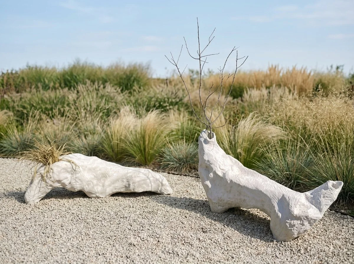 A pair of sculptural benches inspired by driftwood and the organic forms of river landscapes. Their shape emerges through a process that captures the tension between weight and movement, stability and transformation.