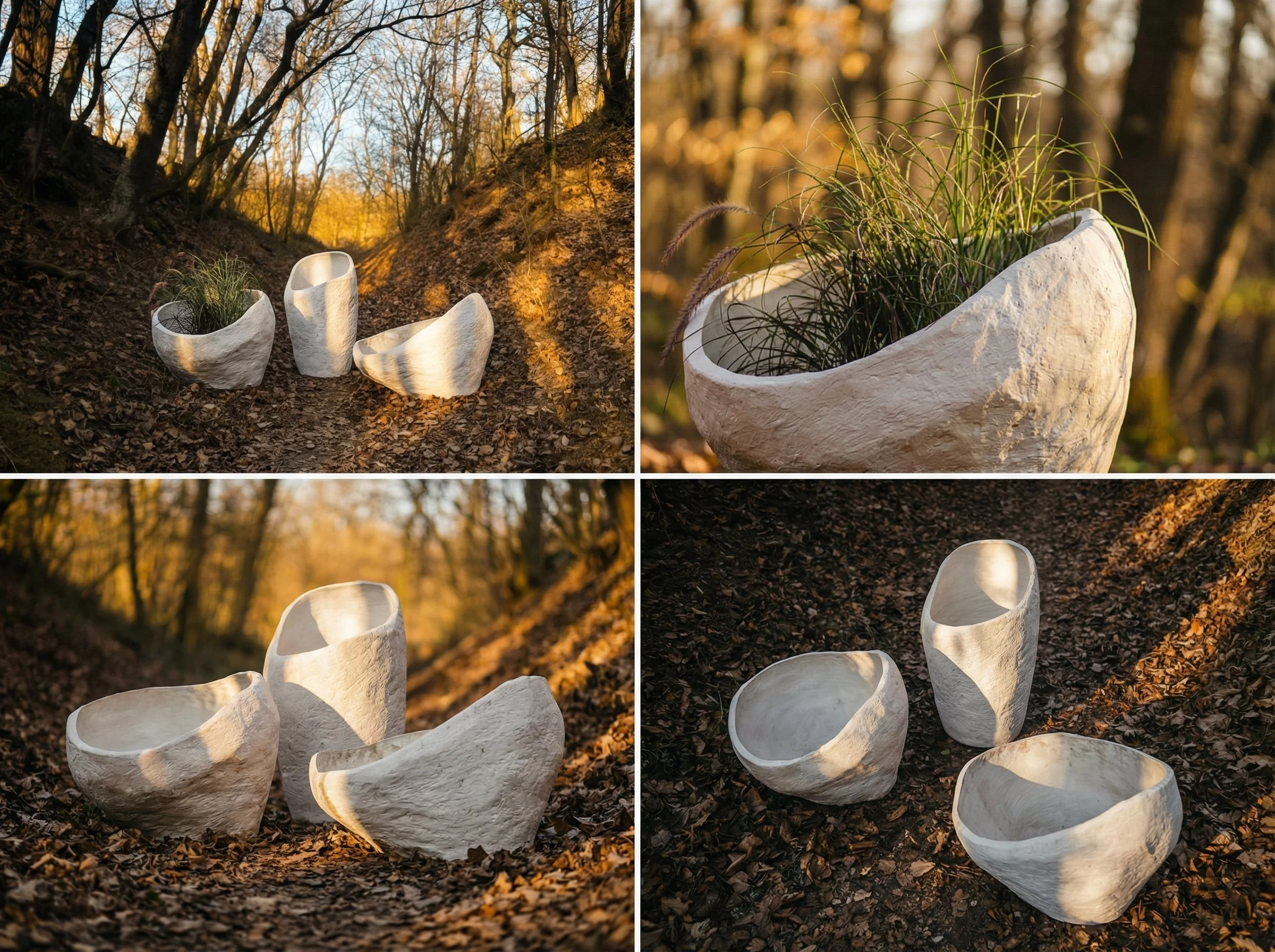 I love water and the life it carries. It pains me to see how we strip rivers of their nature - bending their flow into geometric lines, building dams, suppressing the richness of life along their surface. The Morava River suffers deeply, its current is still being wounded and has been repeatedly distrupted by human intervention. I imagine how it once flowed - wide, wild, overflowing with vegetation, when people still lived in humility and harmony with nature. This contrast between the raw energy of water and its forced control unsettles me, yet also inspires me. The geometry, rhythm, and dynamics of the current and surface ripple are reflected in the structures and forms of my vases.